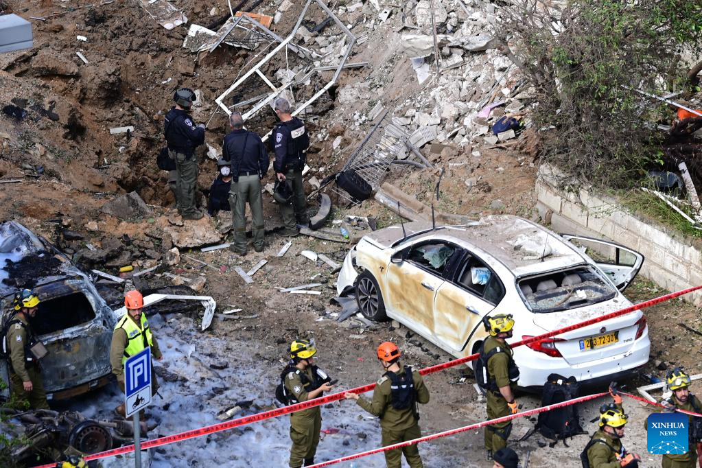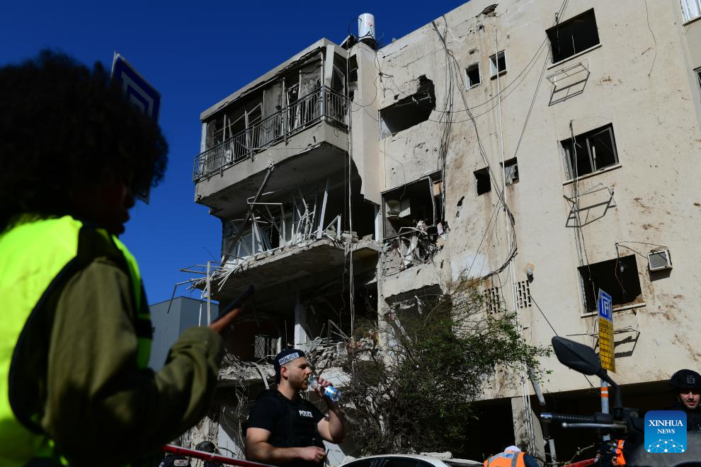 JERUSALEM, March 24 (Xinhua) -- A missile fired from Iran struck Tel Aviv on Tuesday, injuring several people and damaging buildings and vehicles, Israeli authorities said.