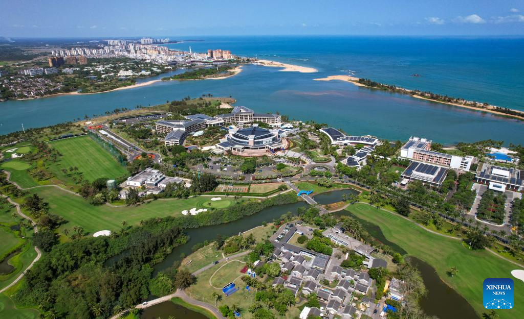 An aerial drone photo taken on March 19, 2026 shows the Dongyu Island Hotel in the Boao zero-carbon demonstration zone in Boao, south China's Hainan Province. Since the "Boao Near-Zero Carbon Demonstration Zone" was renamed the "Boao Zero-Carbon Demonstration Zone" in March 2025, the area has achieved notable progress in energy conservation and carbon reduction and has fully entered a stage of normalized zero-carbon operation. According to measured data, energy-related carbon dioxide emissions from buildings and municipal infrastructure in the zone dropped from 11,350.1 tonnes in 2019 to about 14.6 tonnes in 2025, a reduction of 99.9 percent. The zone generated 29 million kWh of green electricity a year, meeting its yearly power demand of about 19.4 million kWh, with the remaining 9.6 million kWh fed into the grid. (Xinhua/Yang Guanyu)