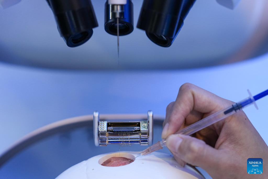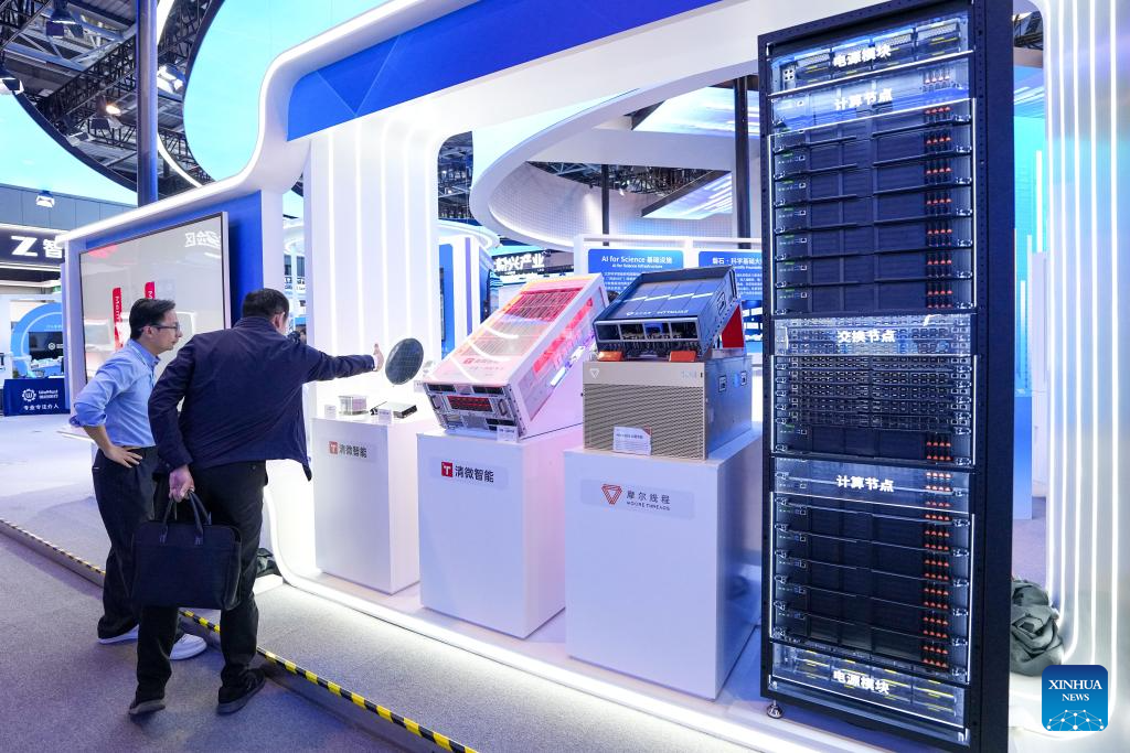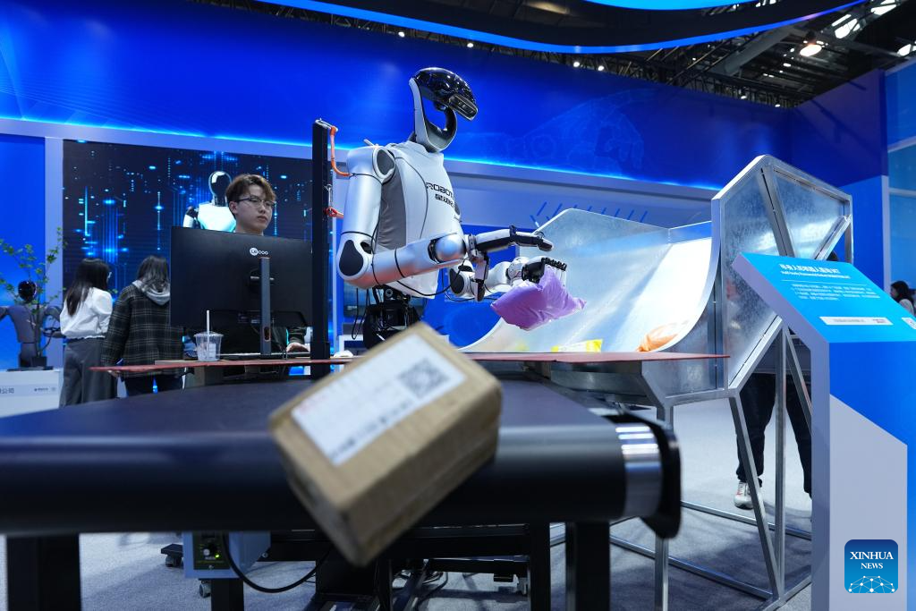 The permanent exhibition this year showcases over 560 technologies and products in the fields such as AI, Embodied Intelligence (EI) and advanced medical devices from 350 plus companies. (Xinhua/Ju Huanzong)
