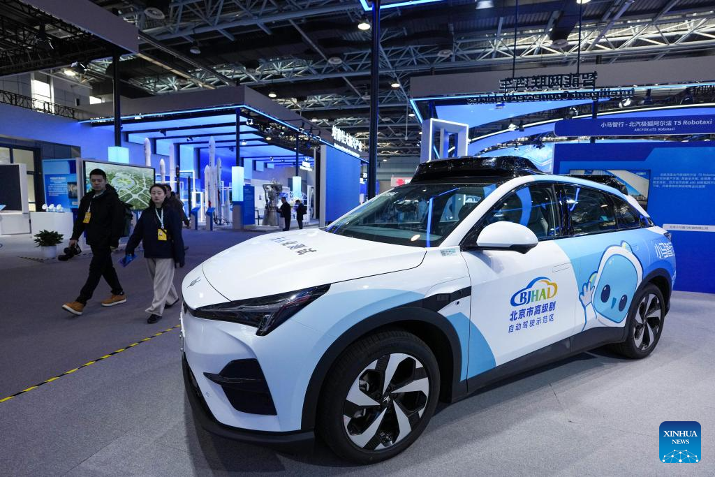 A self-driving vehicle is displayed at the permanent exhibition at the Zhongguancun Exhibition Center in Beijing, capital of China, March 24, 2026. The 2026 Zhongguancun Forum (ZGC Forum), running in Beijing through Sunday, is focused on the theme of "Full Integration Between Technological and Industrial Innovation." Since its founding in 2007, this forum has become a major international event for advancing science and technology innovation.