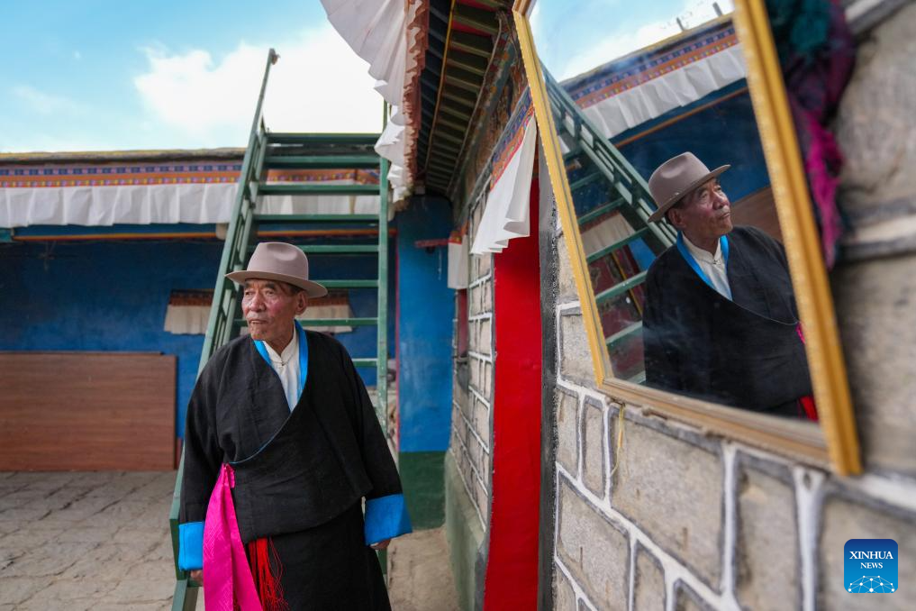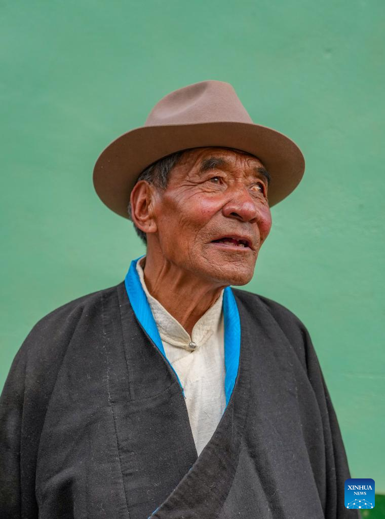 Dawa has witnessed the tremendous development of Xizang. Today, he lives with his family in a spacious, two-story Tibetan-style house, free from worries about food and clothing. (Xinhua/Jigme Dorje)