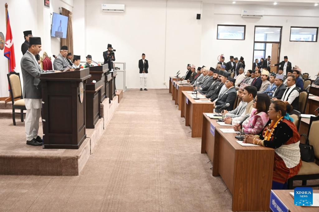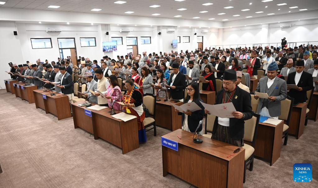 KATHMANDU, March 26 (Xinhua) -- Lawmakers of the newly elected House of Representatives of Nepal took the oath of office and secrecy at a ceremony at the main administrative complex Singha Durbar on Thursday.