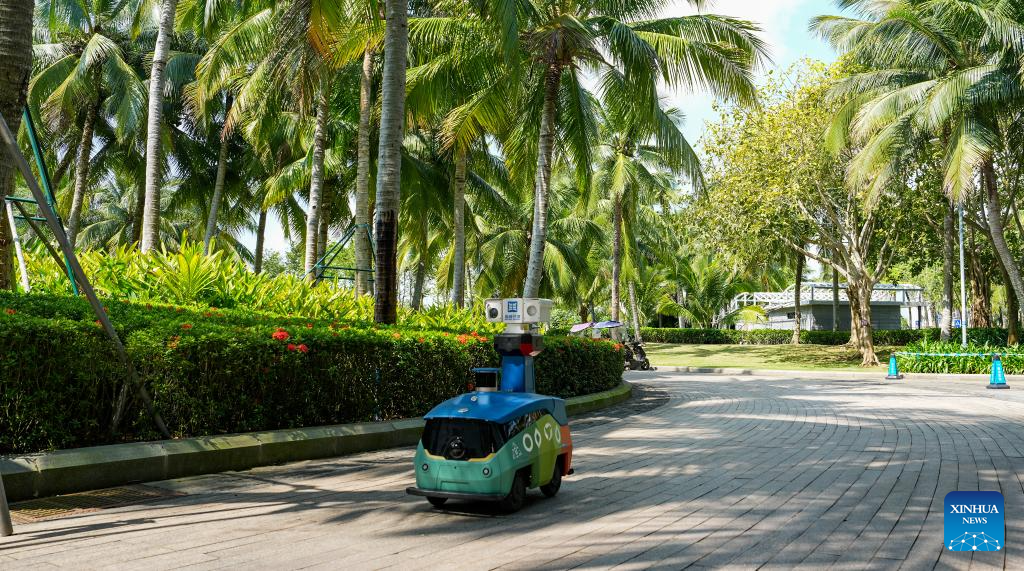 An unmanned patrol vehicle patrols around the China (Hainan) Museum of the South China Sea in south China's Hainan Province, March 25, 2026.
