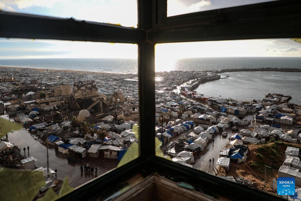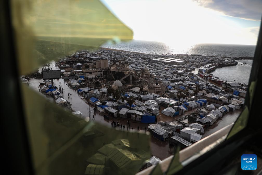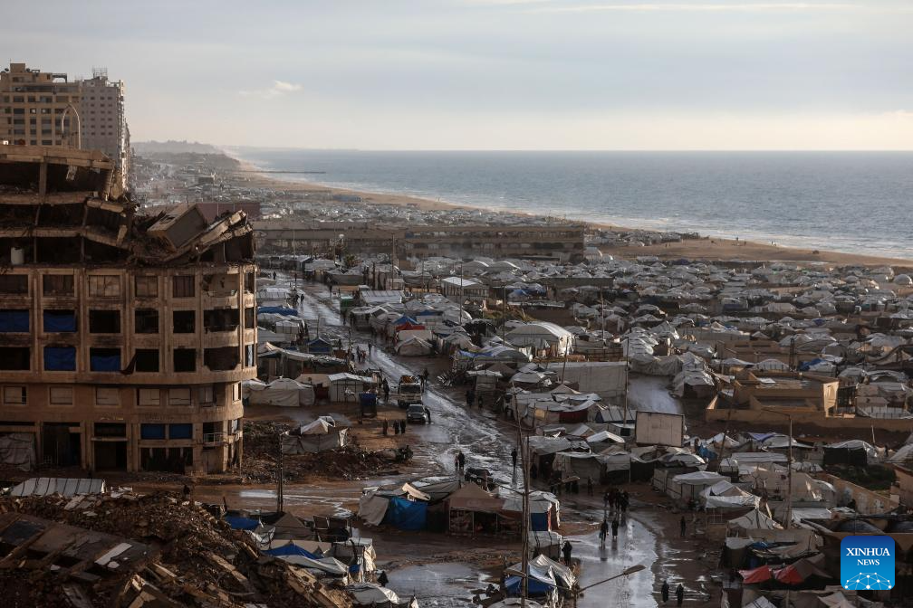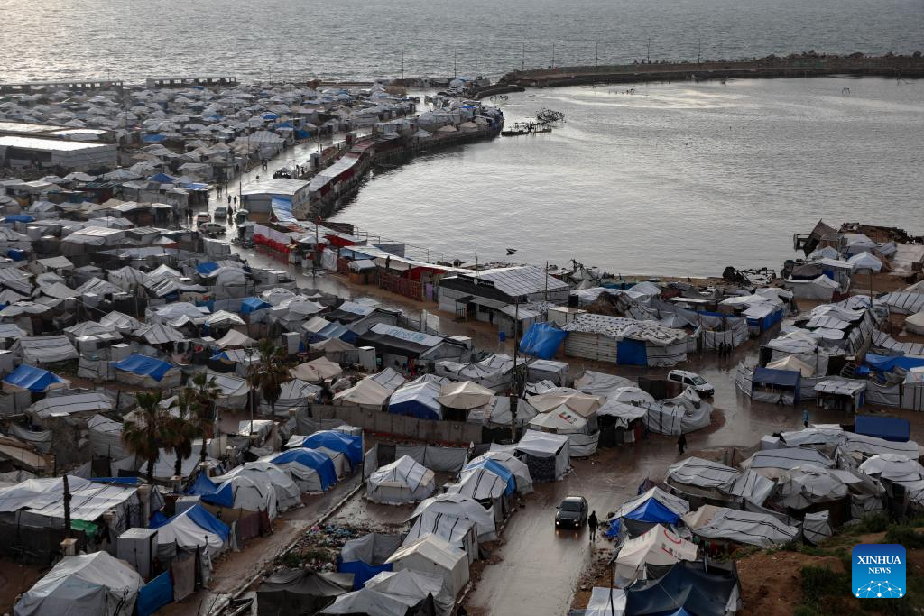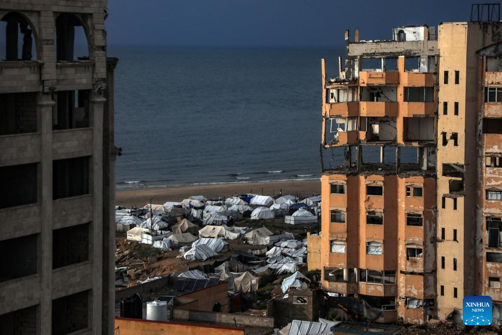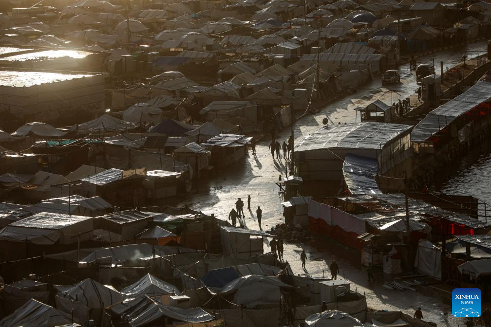 Photo taken on March 25, 2026, shows the temporary tents for displaced Palestinians, in west of Gaza City. (Photo by Rizek Abdeljawad/Xinhua)
