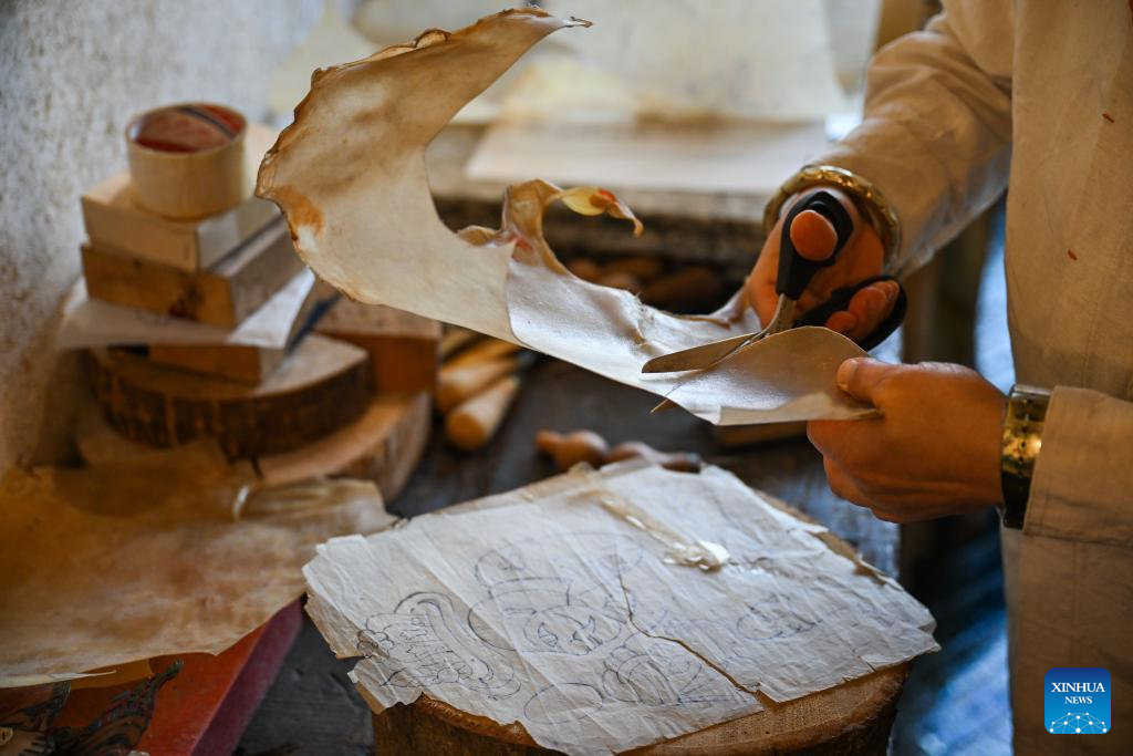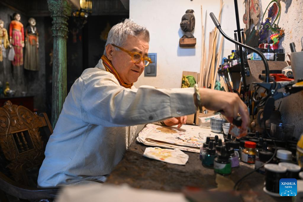 Puppeteer Cengiz Ozek works on an animal hide in Istanbul, Türkiye, March 26, 2026. (Xinhua/Liu Lei)
