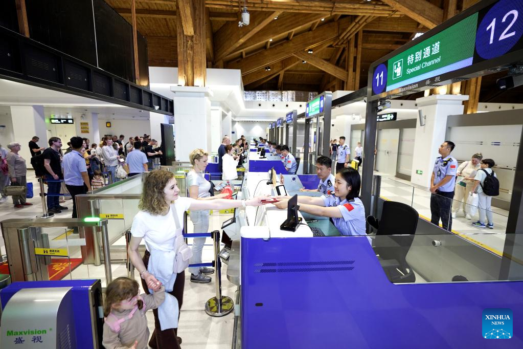 An inbound passenger goes through border control at Meilan International Airport in Haikou, south China's Hainan Province, March 27, 2026. The Hainan Free Trade Port (FTP), the world's largest free trade port by area, marks the 100th day of island-wide special customs operations on Friday. In the course of the past 100 days, the number of visa-free inbound passengers jumped by over 54 percent year on year. (Photo by Wang Yu/Xinhua)