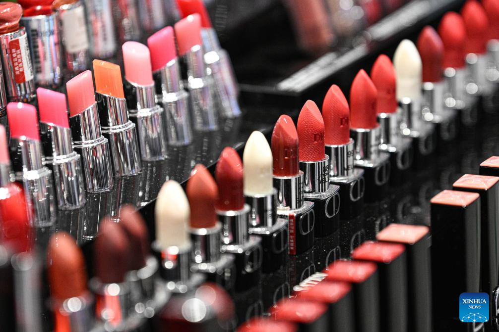 This photo taken on March 27, 2026 shows lipsticks at a duty free shop in Boao, south China's Hainan Province.