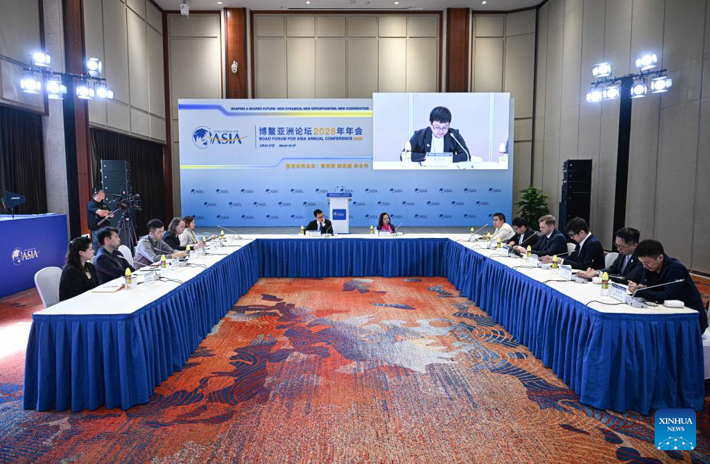 A panel discussion themed on "Cooperation on New Energy in Asia" is held during the Boao Forum for Asia (BFA) Annual Conference 2026 in Boao, south China's Hainan Province, March 27, 2026. (Xinhua/Yang Guanyu)