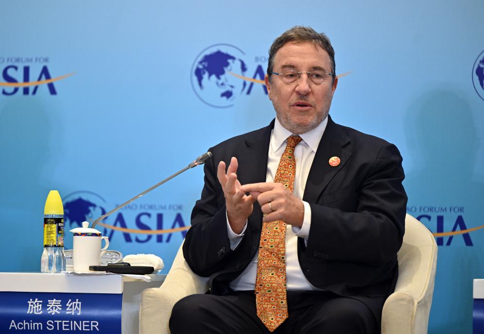 Achim Steiner, former administrator of the United Nations Development Programme (UNDP), senior fellow of the University of Oxford and chair of the Hamburg Sustainability Conference (HSC), speaks at a panel discussion themed on "Accelerating Green Transitions: Paths and Actions" during the Boao Forum for Asia (BFA) Annual Conference 2026 in Boao, south China's Hainan Province, March 26, 2026. (Xinhua/Guo Cheng)