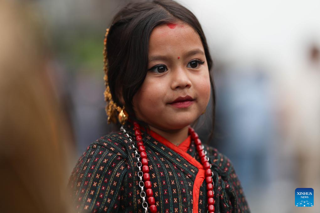 A girl takes part in the Seto Machindranath chariot procession in Kathmandu, Nepal, March 26, 2026. Seto Machindranath is known as the god of rain and both Hindus and Buddhists worship Machindranath for good rain. (Photo by Sulav Shrestha/Xinhua)