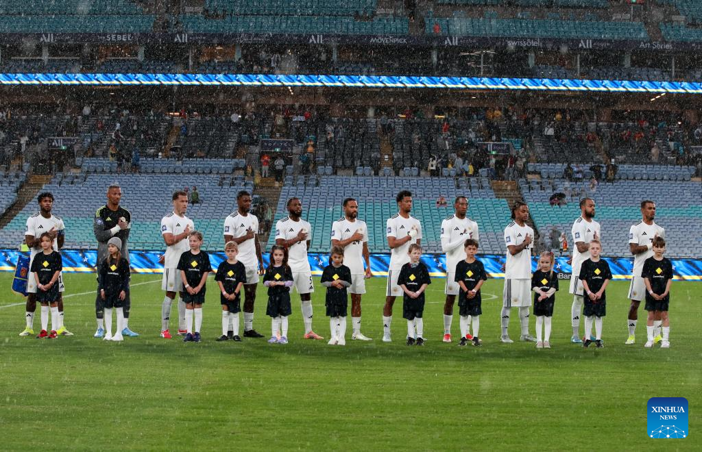 Starting players of Curacao react before the FIFA Series 2026 International Friendly Match between China and Curacao in Sydney, Australia, March 27, 2026. (Xinhua/Ma Ping)