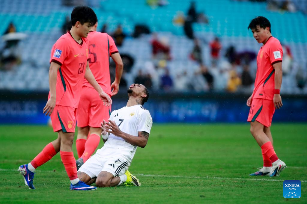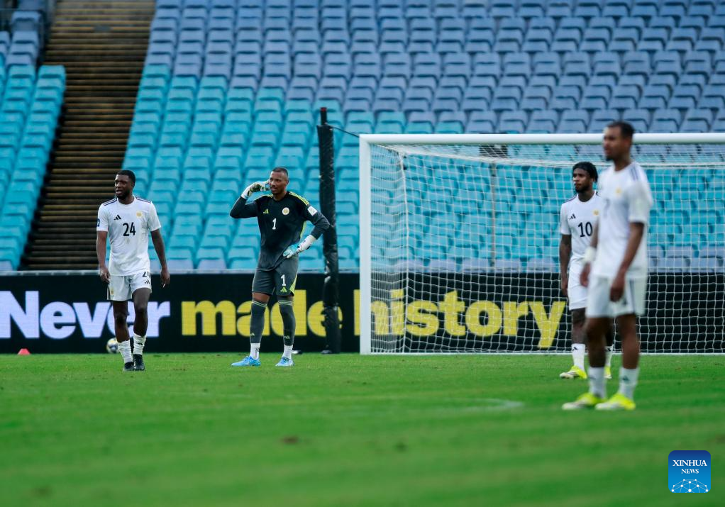 Players of Curacao react after team China scoring during the FIFA Series 2026 International Friendly Match between China and Curacao in Sydney, Australia, March 27, 2026. (Xinhua/Ma Ping)