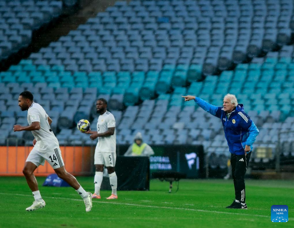 Curacao's head coach Fred Rutten (R) instructs during the FIFA Series 2026 International Friendly Match between China and Curacao in Sydney, Australia, March 27, 2026. (Xinhua/Ma Ping)