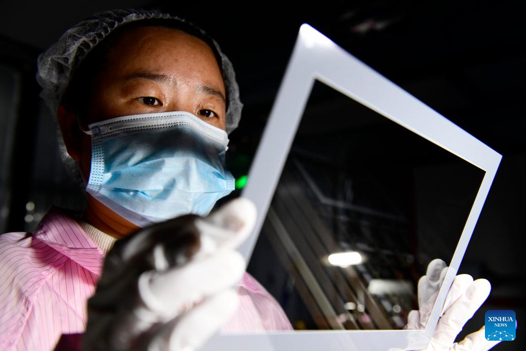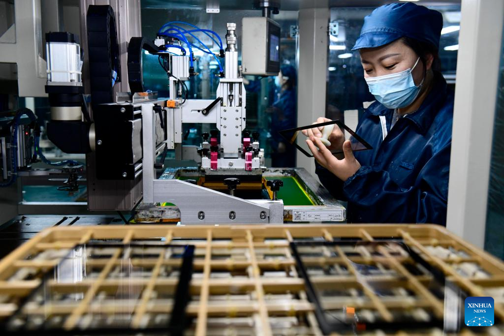 A staff member processes touchscreens in Juxian County of Rizhao City, east China's Shandong Province, March 27, 2026. Rizhao has vigorously advanced technological upgrading initiatives, continuously promoting the transformation of traditional industries toward higher-end, intelligent, and green development, while fostering and expanding emerging and future-oriented industries, and striving to build a modern industrial system with distinctive port-based characteristics. (Xinhua/Guo Xulei)