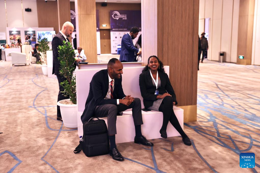 Guests communicate during "Invest in Ethiopia" High-Level Business Forum in Addis Ababa, Ethiopia, March 27, 2026. Ethiopia's flagship investment forum, dubbed "Invest in Ethiopia," concluded on Friday with the signing of investment agreements worth over 13 billion U.S. dollars. The fourth edition of the forum was held under the theme "Ethiopia: Ready for Business" in Addis Ababa, the country's capital, attracting hundreds of investors, business leaders, and advisors from across the globe, according to the organizers. (Xinhua/Geng Xinning)