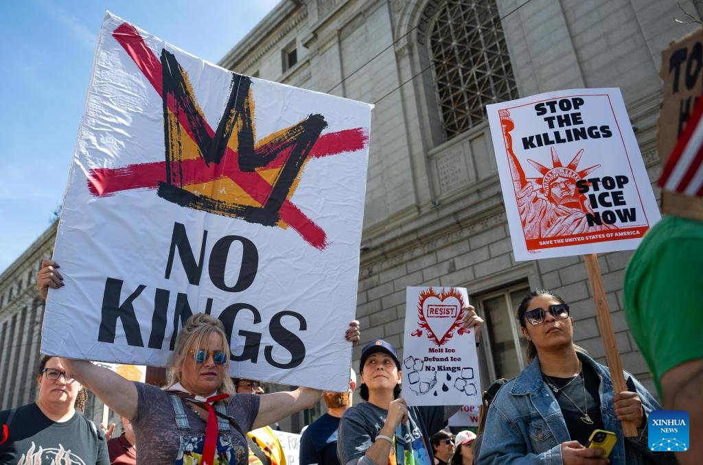 SACRAMENTO/NEW YORK, United States, March 28 (Xinhua) -- Millions of Americans took to the streets Saturday in the third wave of "No Kings" rallies across the United States, protesting policies of the U.S. administration, ranging from military action in Iran to controversial immigration enforcement.