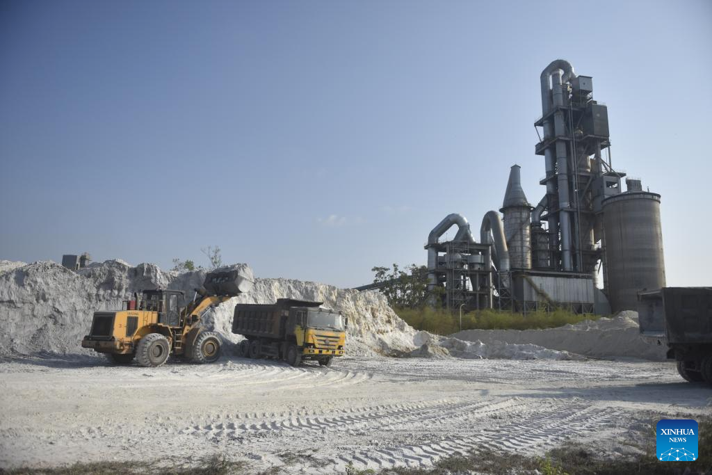 This photo taken on April 1, 2026, shows Chinese-invested Cambodia Cement Chakrey Ting Factory Co., Ltd. in Kampot province, Cambodia. (Xinhua/Wu Changwei)
