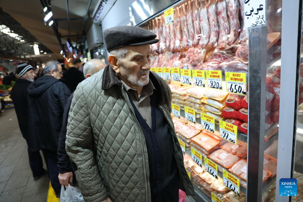 People shop at a local market in Ankara, Türkiye, April 3, 2026. Türkiye's annual inflation marginally eased to 30.87 percent in March from 31.53 percent in February, marking a four-year low but remaining stubbornly high, according to official data on Friday.