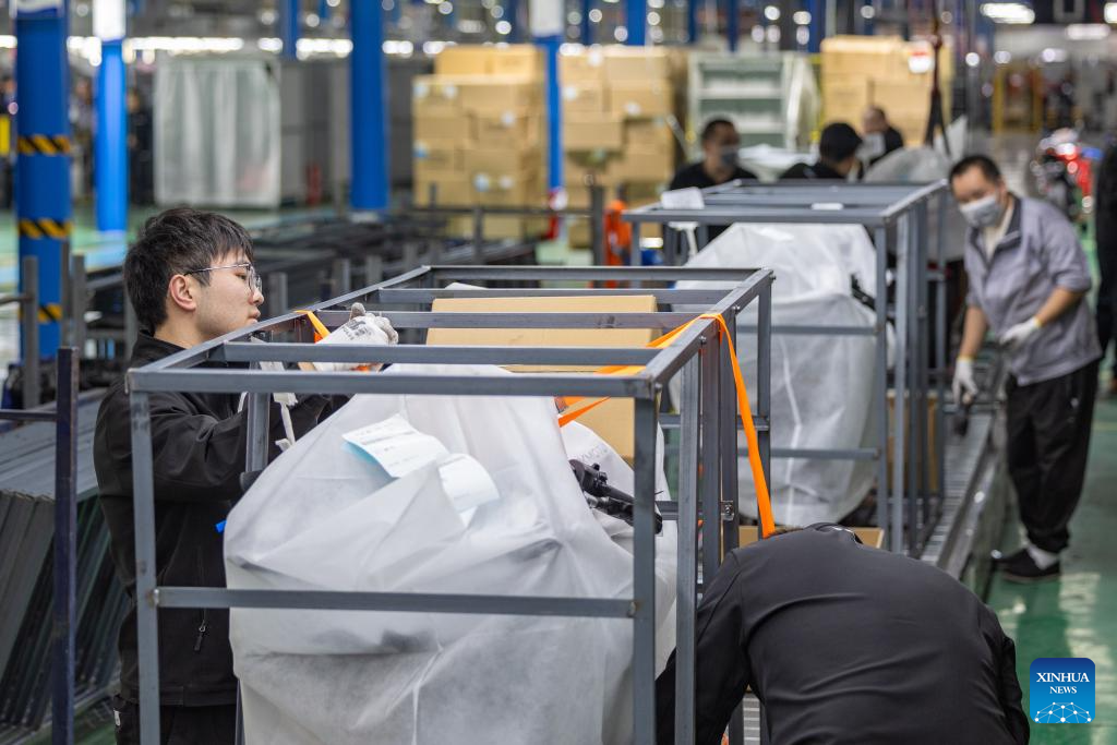 Staff members pack the motorcycles at the production workshop of ZXMOTO in Liangjiang New Area, southwest China's Chongqing, April 1, 2026.(Xinhua/Huang Wei)