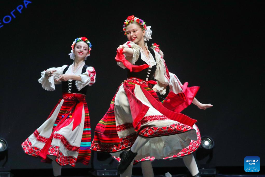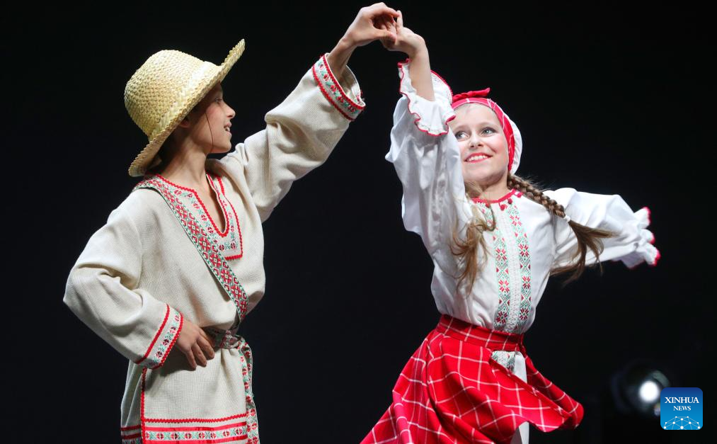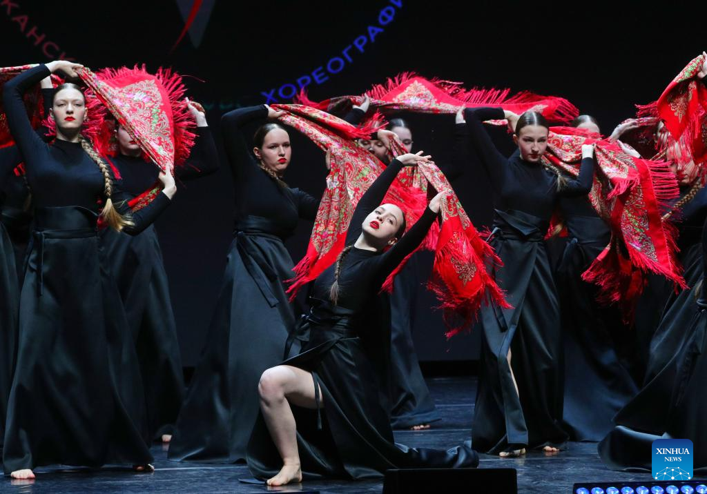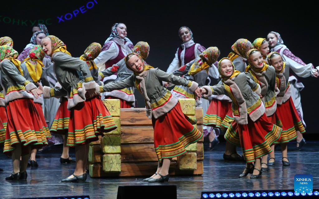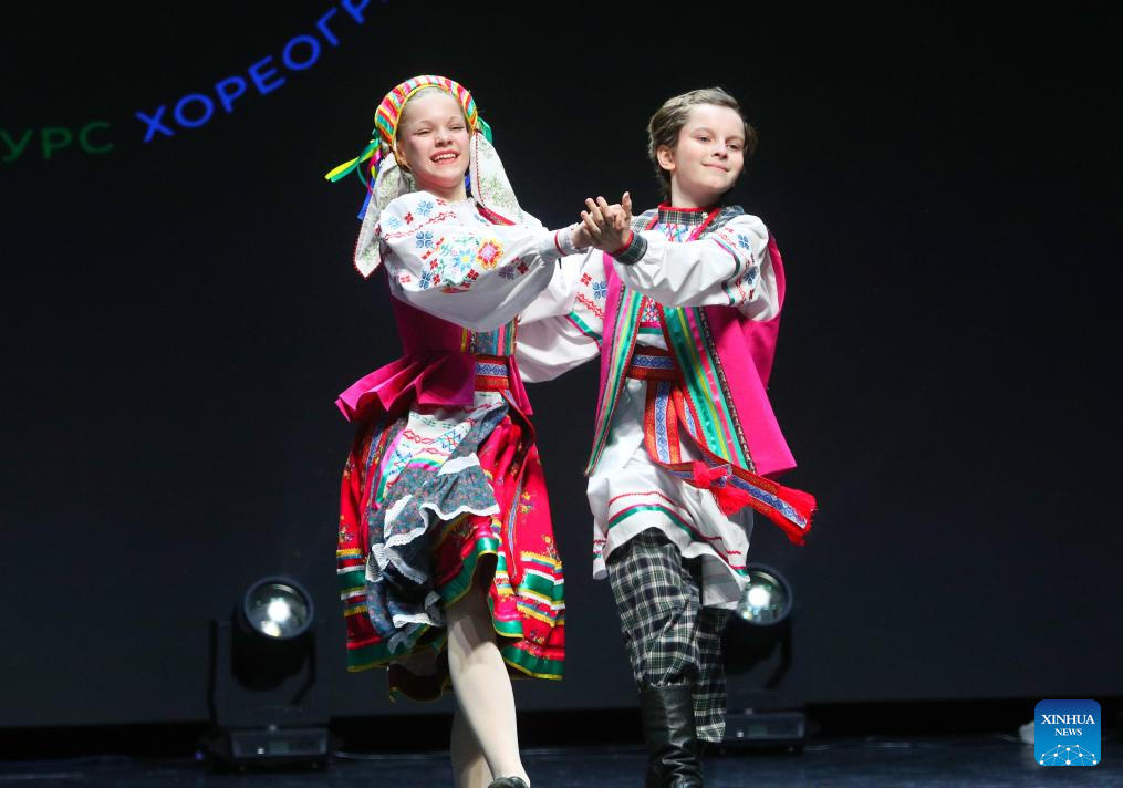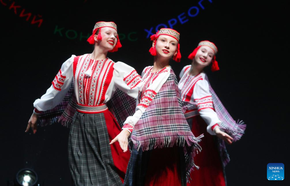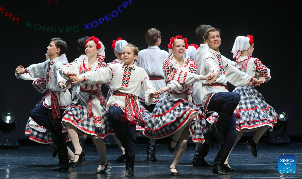 Dancers perform during a dance contest in Minsk, Belarus, April 4, 2026. (Photo by Henadz Zhinkov/Xinhua)