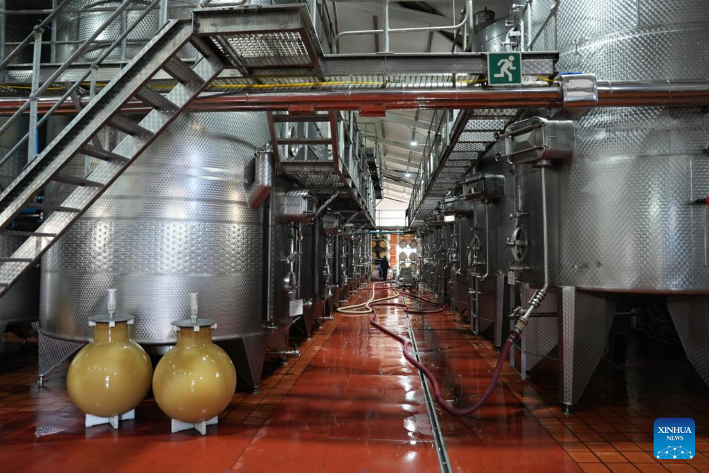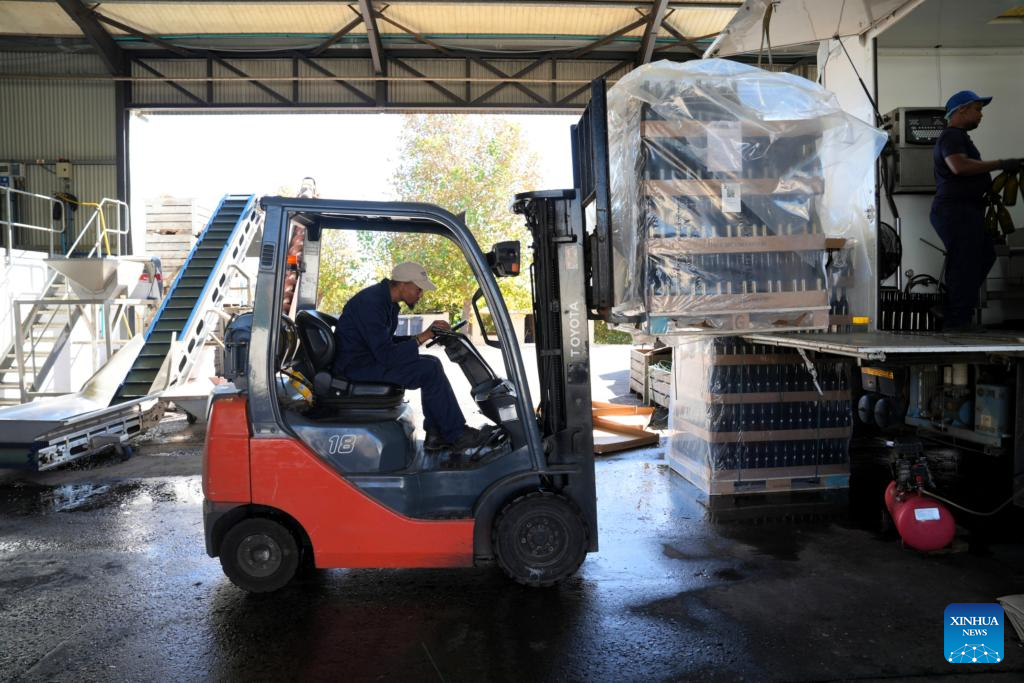 CAPE TOWN, April 5 (Xinhua) -- Under the soft glow of early autumn in the Southern Hemisphere, bottling lines hum steadily at Diemersdal Wine Estate in South Africa's Cape Town. The harvest season has just passed, leaving rows of vines neatly stripped of their grapes, yet the winery remains in full motion.