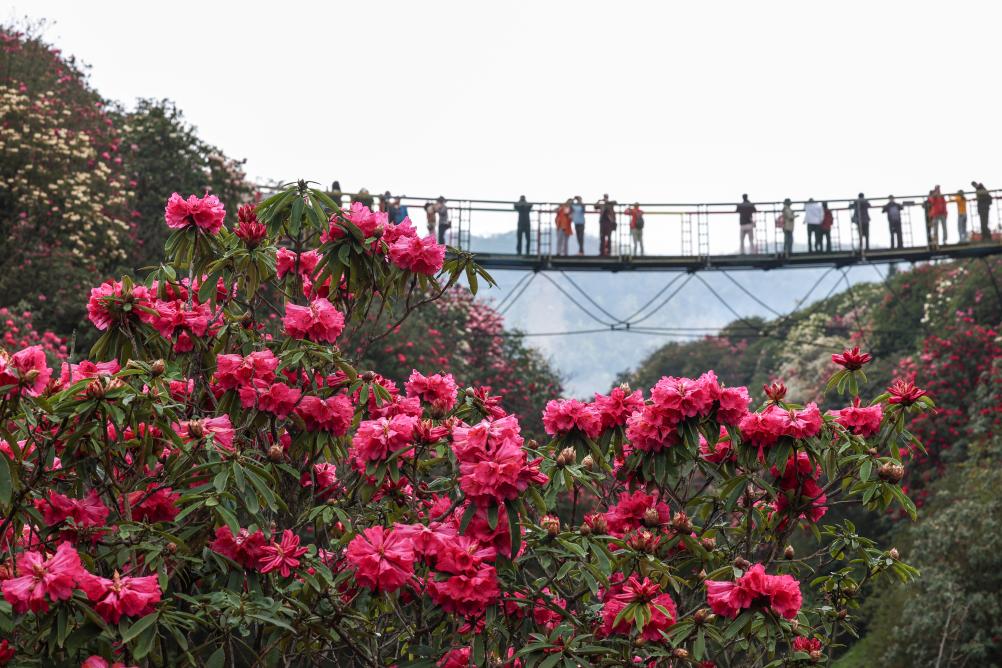 Tourists visit an azalea scenic area in Bijie City, southwest China's Guizhou Province, March 29, 2026. (Photo by Li Hua/Xinhua)Forest rangers patrol at Baili Azalea Nature Reserve in Bijie City, southwest China's Guizhou Province, April 2, 2026. (Xinhua/Yang Wenbin) An aerial drone photo shows tourists visiting an azalea scenic area in Bijie City, southwest China's Guizhou Province, April 1, 2026. (Xinhua/Yang Wenbin)Tourists visit an azalea scenic area in Bijie City, southwest China's Guizhou Province, April 1, 2026. (Xinhua/Liu Xu)An aerial drone photo shows azaleas shrouded in morning mist at an azalea scenic area in Bijie City, southwest China's Guizhou Province, April 1, 2026. (Photo by Chen He/Xinhua)People sing a song of the Dong ethnic group at an azalea scenic area in Bijie City, southwest China's Guizhou Province, April 1, 2026. (Xinhua/Yang Wenbin)Tourists visit an azalea scenic area in Bijie City, southwest China's Guizhou Province, March 26, 2026. (Photo by Chen Xi/Xinhua)Tourists visit an azalea scenic area in Bijie City, southwest China's Guizhou Province, March 26, 2026. (Photo by Hu Panxue/Xinhua)
