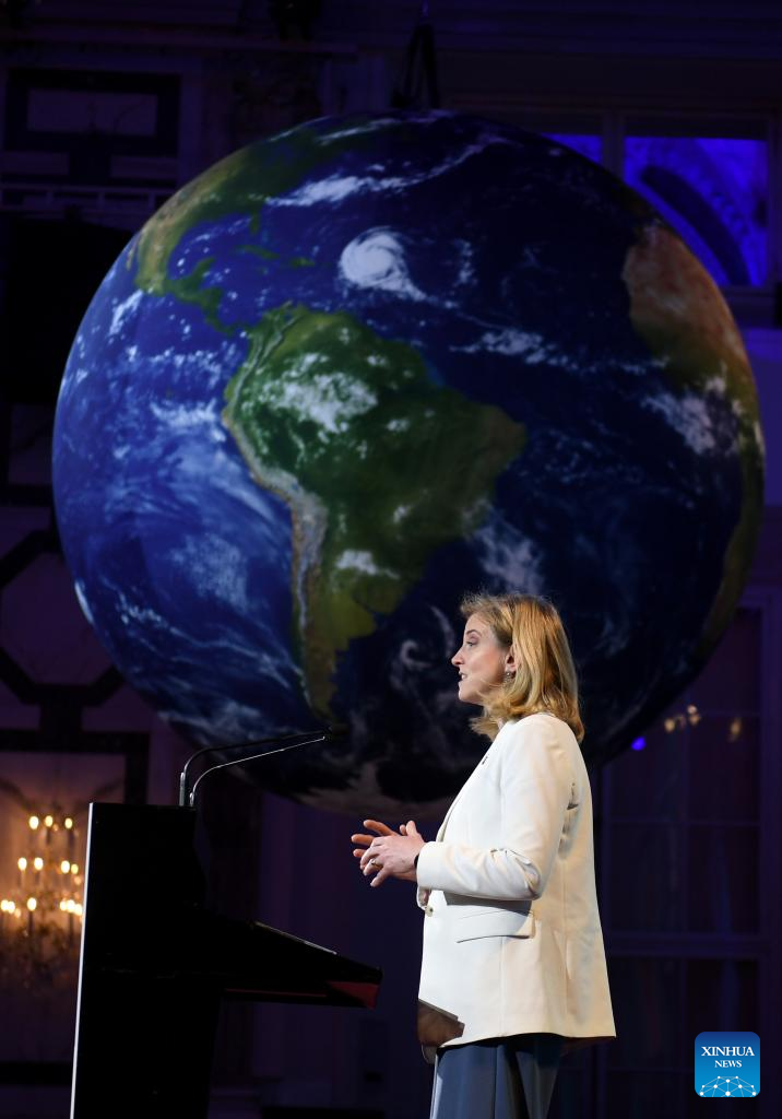 Austrian Foreign Minister Beate Meinl-Reisinger delivers a speech at the International Vienna Energy and Climate Forum in Vienna, Austria, April 9, 2026. (Xinhua/He Canling)