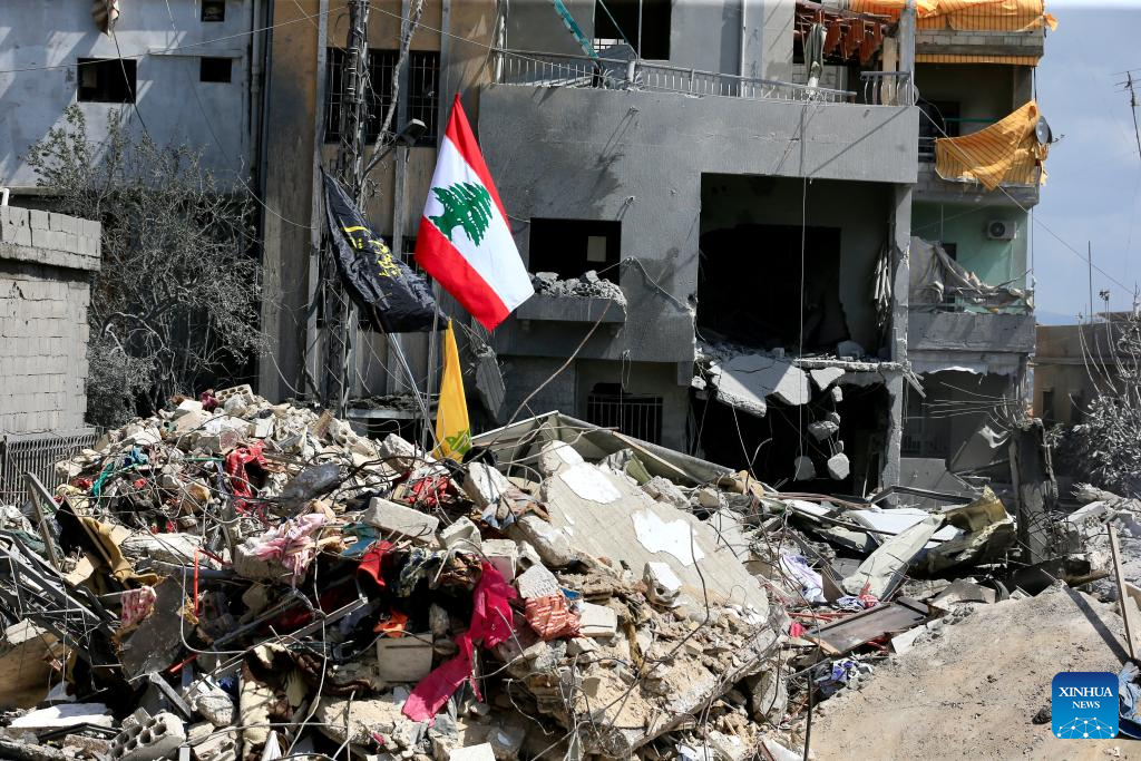Photo taken on April 9, 2026 shows buildings destroyed by Israeli airstrikes in Zrariyeh, southern Lebanon. The death toll from Israel's Wednesday attacks across Lebanon has risen to 303, the Lebanese Health Ministry said Thursday. (Photo by Ali Hashisho/Xinhua)