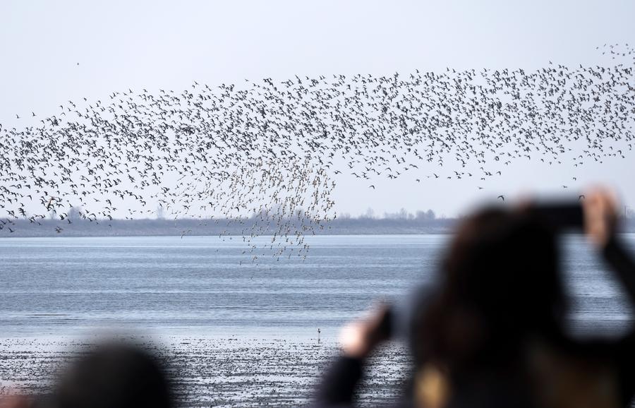There, dense flocks ripple like waves as they surge and dive across the sky, while birdsong mingles with the rapid clicking of camera shutters, ushering the wetland -- a paradise for bird lovers and photographers -- into its most vibrant season of the year.