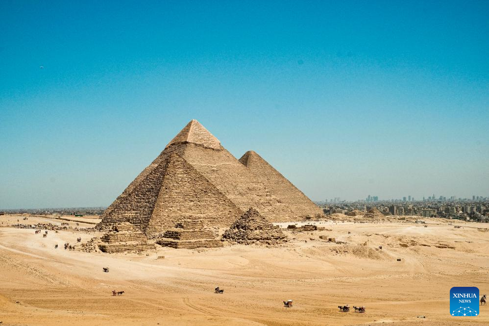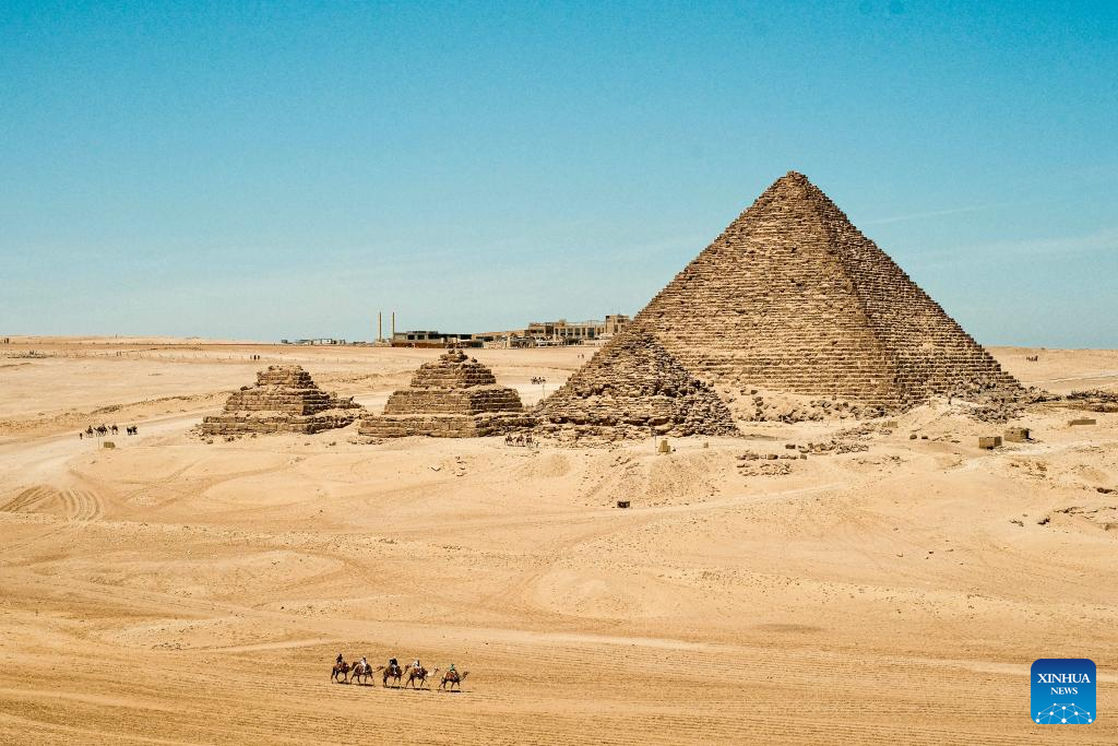 This photo taken on April 9, 2026 shows the Giza Pyramids scenic spot in Giza, Egypt. The Giza Pyramids located southwest of Cairo, capital of Egypt, are one of the most representative sites of ancient Egyptian civilization. The complex includes the three pyramids known as the Great Pyramids, the massive sculpture known as the Great Sphinx, and several ancient cemeteries and smaller pyramids. The pyramids are part of a UNESCO World Heritage Site inscribed in 1979. (Xinhua/Xin Mengchen)