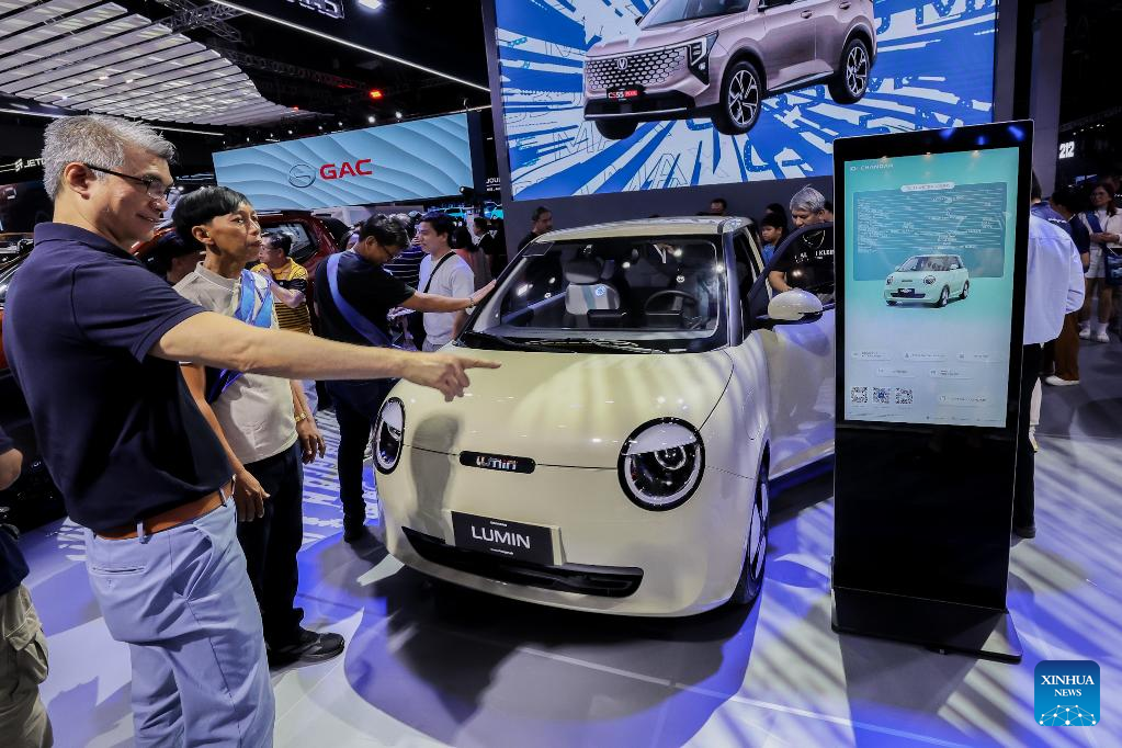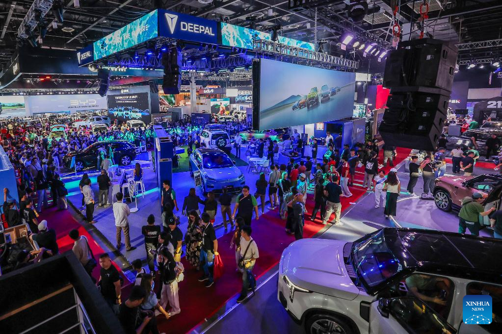 People visit the Manila International Auto Show at the World Trade Center in Pasay City, the Philippines, on April 9, 2026. The auto show takes place from April 9 to 12, showcasing the newest cars from automotive brands around the globe. (Xinhua/Rouelle Umali)