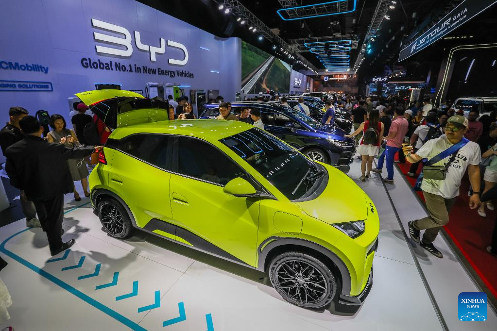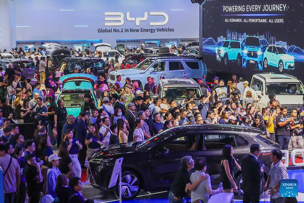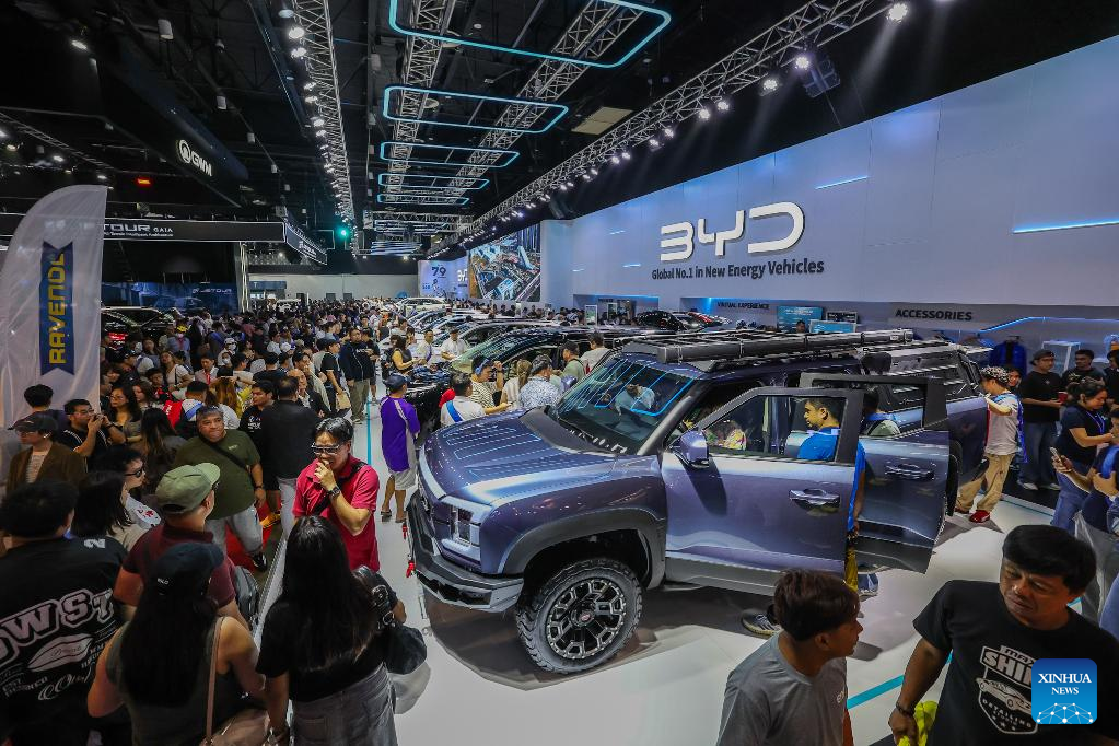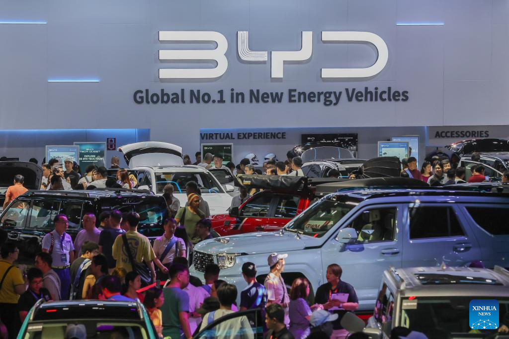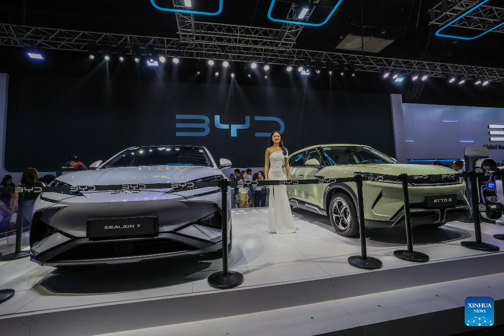 BYD cars are on display during the Manila International Auto Show at the World Trade Center in Pasay City, the Philippines, on April 9, 2026. The auto show takes place from April 9 to 12, showcasing the newest cars from automotive brands around the globe. (Xinhua/Rouelle Umali)