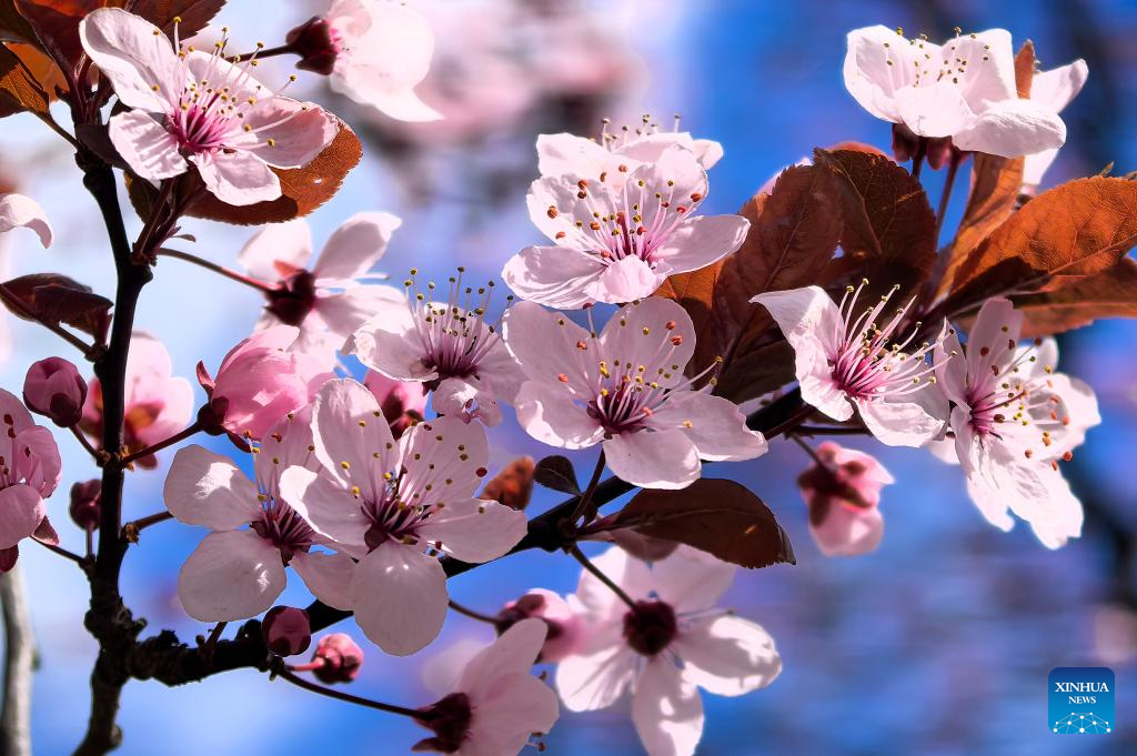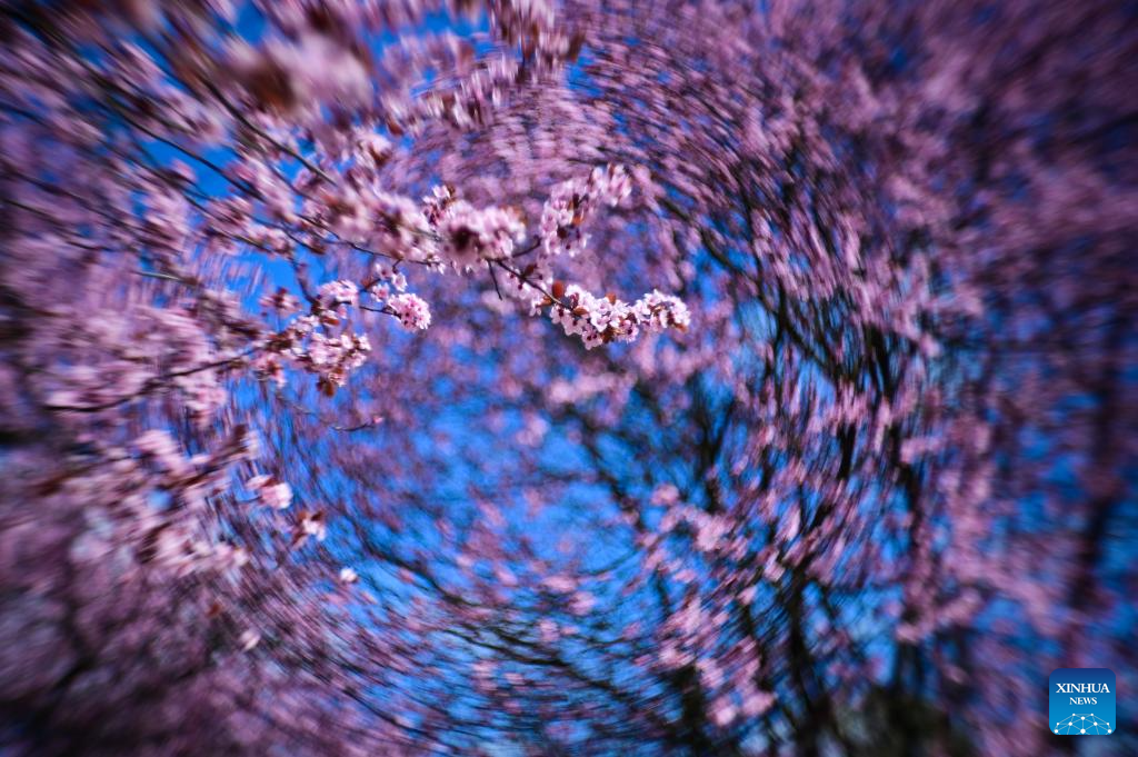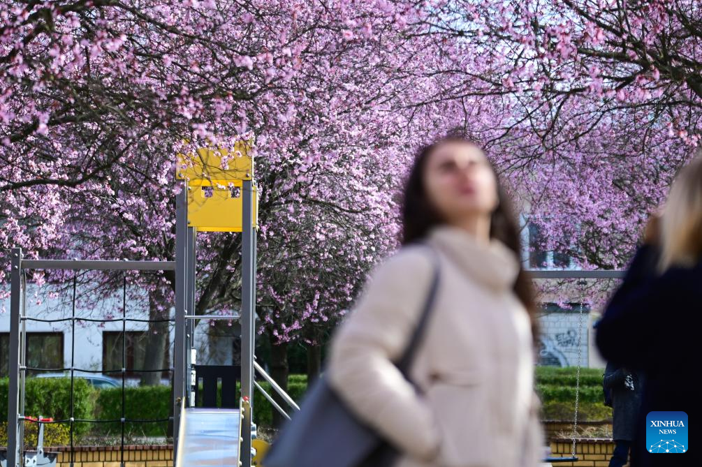 This photo taken on April 10, 2026 shows cherry blossoms in Warsaw, Poland. (Photo by Aleksy Witwicki/Xinhua)