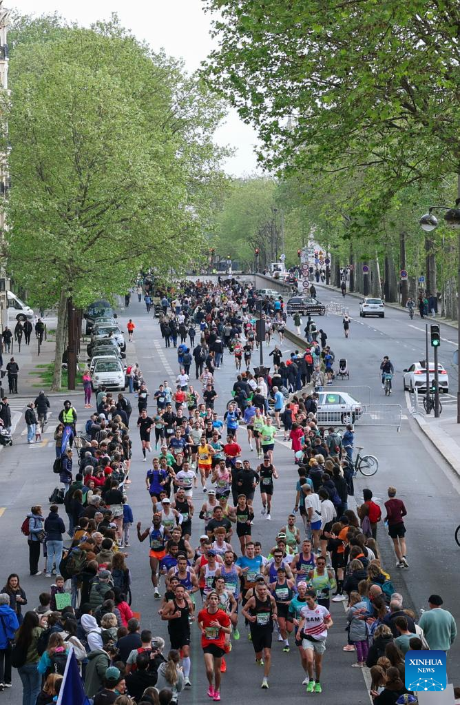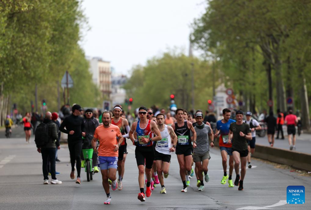 Participants run during the Paris Marathon 2026 in Paris, France, April 12, 2026. (Xinhua/Wu Huiwo)