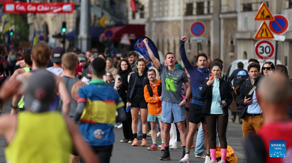 Spectators cheer for participants during the Paris Marathon 2026 in Paris, France, April 12, 2026. (Xinhua/Wu Huiwo)