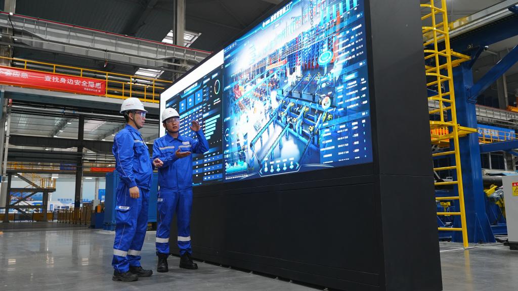 At the heart of the transformation is a digital twin system, a virtual replica of the 20,000-square-meter plant that draws real-time data from every machine. A wall-sized screen in the oil casing workshop tracks each pipe's location, processing status and energy consumption as it moves through production.