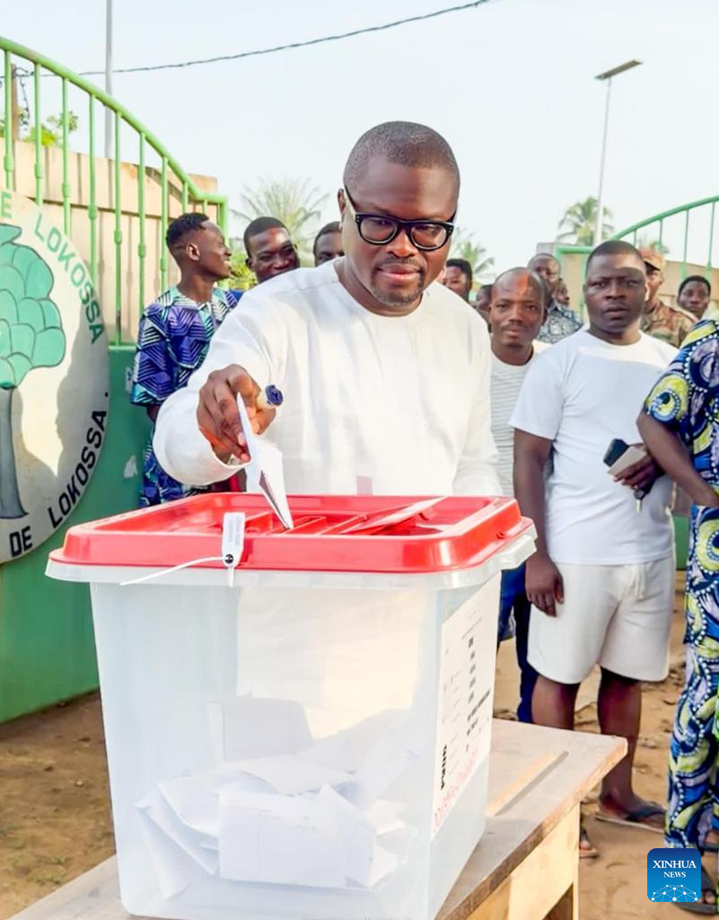 Romuald Wadagni casts his ballot at a polling station in Lokossa, Benin, on April 12, 2026. Romuald Wadagni won Benin's presidential election held on Sunday, according to preliminary results released Monday by the country's Autonomous National Electoral Commission. (Xinhua)