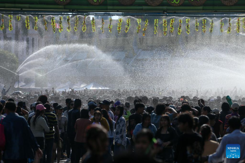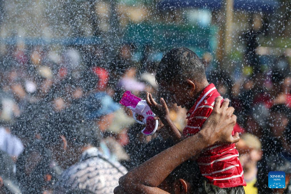 YANGON, April 14 (Xinhua) -- Crowds across Myanmar continued to celebrate the traditional Thingyan water festival on Tuesday, the second day of the festivities, reuniting with family and taking part in traditional activities.
