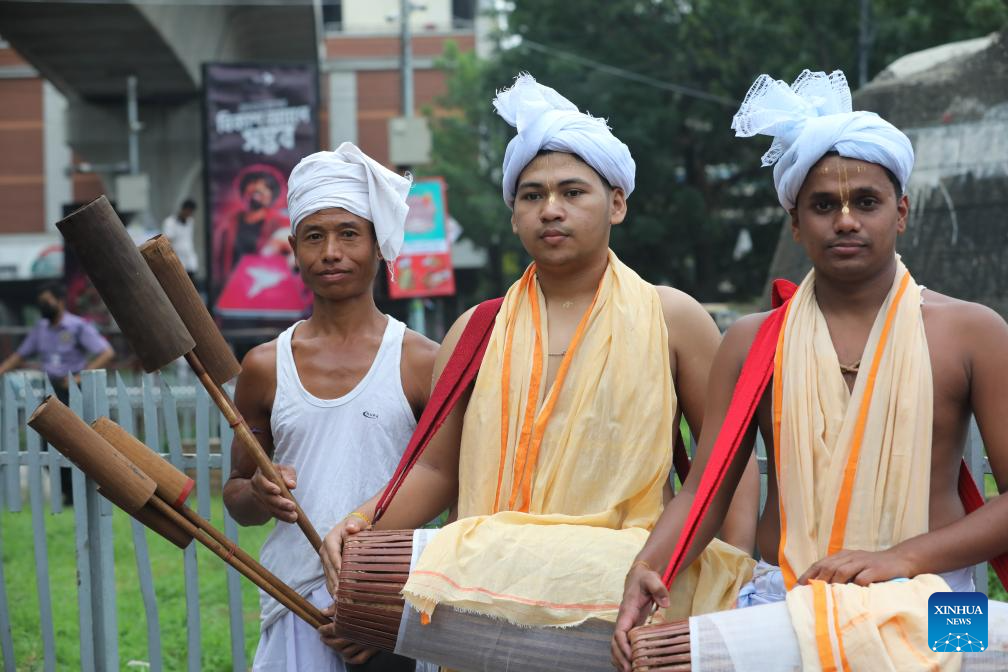People attend a procession in celebration of the Bengali New Year, known as Pohela Boishakh, in Dhaka, Bangladesh, April 14, 2026. Bangladesh celebrated Bengali New Year 1433 on Tuesday with processions, traditional food and cultural events in the capital Dhaka and elsewhere in the South Asian country. (Photo by Habibur Rahman/Xinhua)