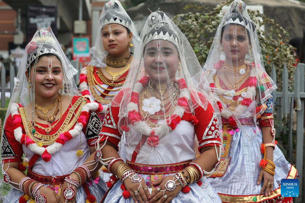 Women attend a procession in celebration of the Bengali New Year, known as Pohela Boishakh, in Dhaka, Bangladesh, April 14, 2026. Bangladesh celebrated Bengali New Year 1433 on Tuesday with processions, traditional food and cultural events in the capital Dhaka and elsewhere in the South Asian country. (Photo by Habibur Rahman/Xinhua)