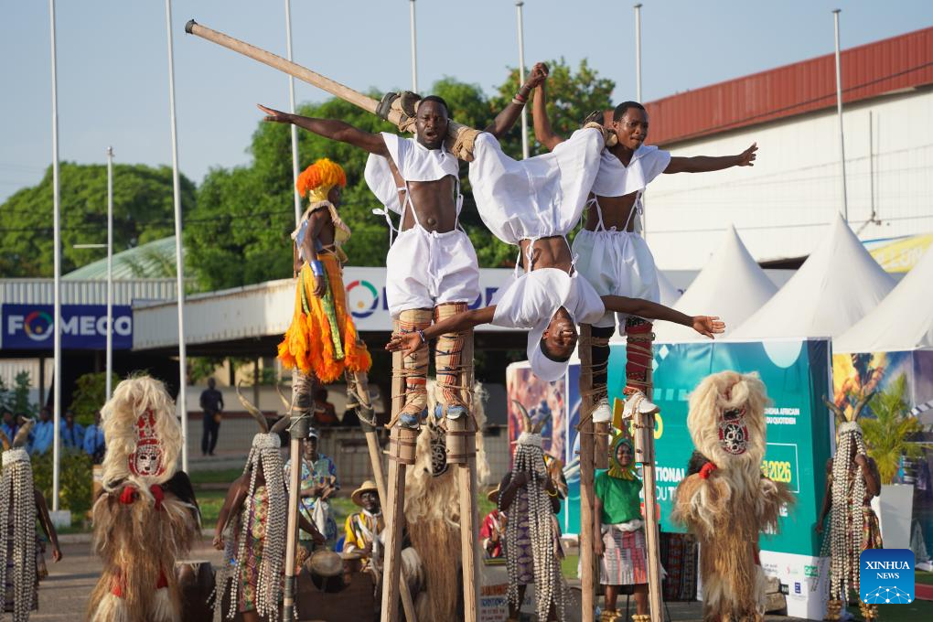 This photo taken on April 14, 2026 shows a performance at the opening ceremony of the ninth Togo International Film Festival and China Film Week in Lome, capital of Togo. The ninth Togo International Film Festival and China Film Week opened here on Tuesday. (Xinhua/Si Yuan)