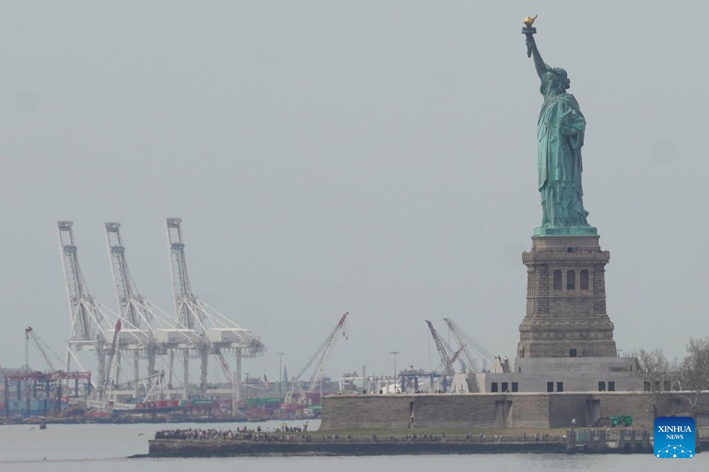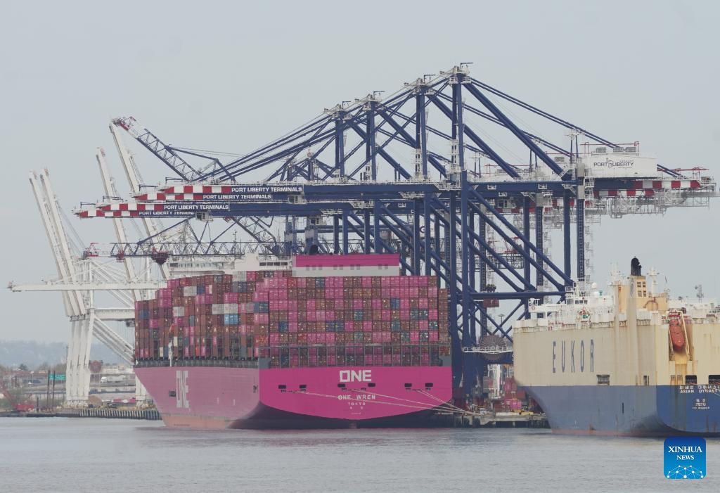 Photo taken on April 15, 2026 shows the Port of New York and New Jersey, which serves as a critical gateway for trade and a major logistics hub for the Northeast of U.S., in New York, the United States. The U.S. government has informed the New York-based Court of International Trade that it will launch a system next Monday to issue refunds totaling 166 billion U.S. dollars to American importers. (Xinhua/Zhang Fengguo)