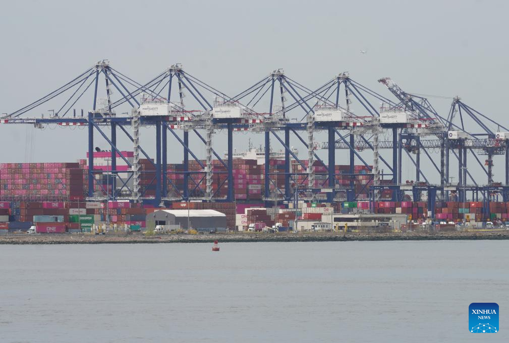 Photo taken on April 15, 2026 shows a container terminal of the Port of New York and New Jersey, which serves as a critical gateway for trade and a major logistics hub for the Northeast of U.S., in New York, the United States. The U.S. government has informed the New York-based Court of International Trade that it will launch a system next Monday to issue refunds totaling 166 billion U.S. dollars to American importers. (Xinhua/Zhang Fengguo)