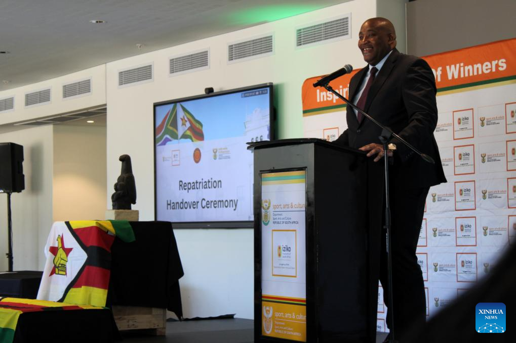 CAPE TOWN, April 15 (Xinhua) -- South Africa has formally handed back to Zimbabwe a centuries-old stone sculpture of its sacred national emblem, the Zimbabwe Bird, along with ancestral human remains.