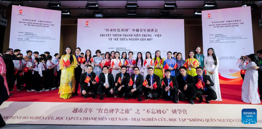 Young people from China and Vietnam participate in a speech event in Beijing, capital of China, April 14, 2026. For many young Vietnamese participants, the "Red Study Tours" across China are far more than a sightseeing trip, offering instead a journey through shared revolutionary history and fresh inspiration for the younger generation.