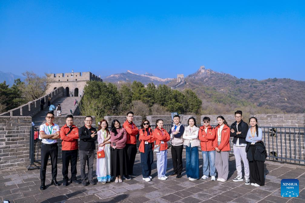 Young people from China and Vietnam visit Badaling section of the Great Wall in Beijing, capital of China, April 14, 2026. For many young Vietnamese participants, the "Red Study Tours" across China are far more than a sightseeing trip, offering instead a journey through shared revolutionary history and fresh inspiration for the younger generation.