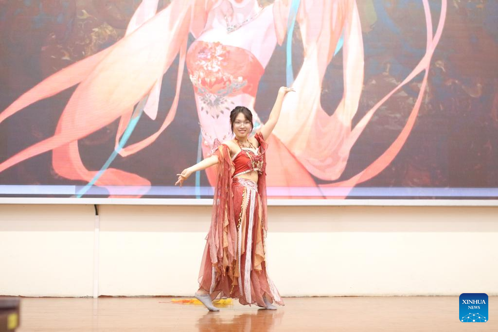 A student performs during a celebration marking the United Nations Chinese Language Day at the University of Languages and International Studies under Vietnam National University in Hanoi, Vietnam, April 15, 2026. (University of Languages and International Studies under Vietnam National University/Handout via Xinhua)