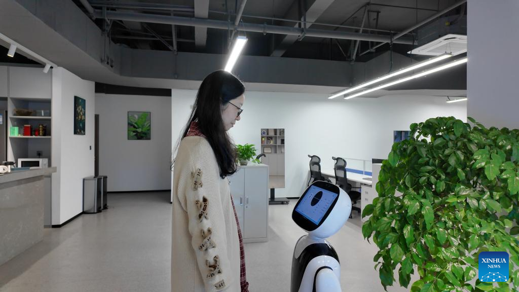 This photo taken on March 18, 2026 shows "Kangbao" (Health Baby), a companion healthcare robot, at the National and Local Joint Engineering Laboratory for Next-Generation Internet Data Processing Technology of the University of Electronic Science and Technology of China (UESTC) in Chengdu, southwest China's Sichuan Province. (University of Electronic Science and Technology of China/Handout via Xinhua)