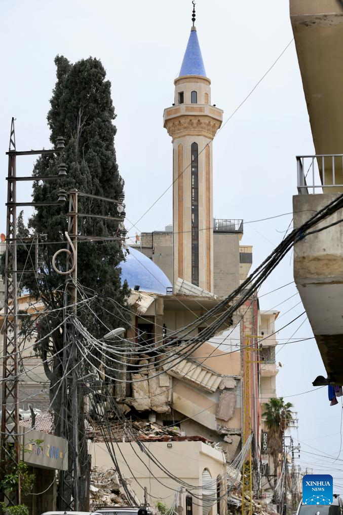 Photo taken on April, 15, 2026, shows a Mosque damaged by Israeli raids in Tyre, southern Lebanon. (Photo by Ali Hashisho/Xinhua)