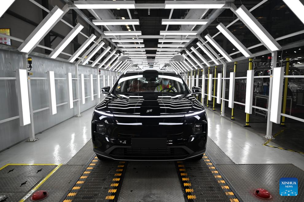 This photo taken on March 23, 2026 shows a production line of Chinese auto brand Jetour at a manufacturing base in Kaifeng, central China's Henan Province.